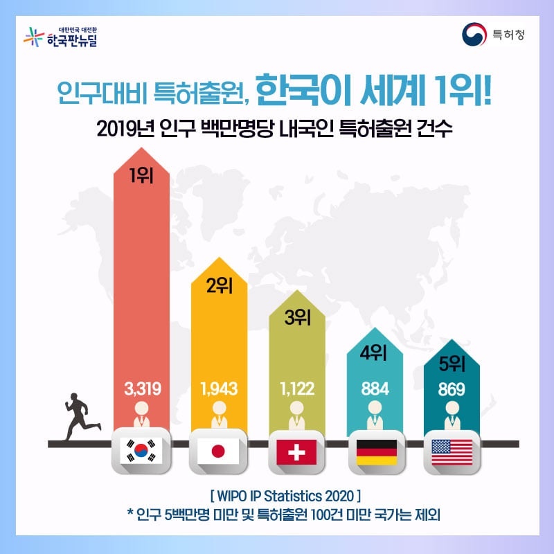 기술과 산업의 시대에서 국제 특허의 중요성은 굳이 강조할 필요조차 없습니다. 삼성과 애플의 특허 분쟁에서 그 중요성은 이미 일반인들에게도 잘 알려져 있습니다. 기술이라는 지적재산을 특허를 통해 방어하지 않고서는 기업이 생존하기 어렵다. 한국은 특허를 많이 생산해 내는 나라입니다. PCT 국제특허출원 기준 한국은 4위 정도이며, 독일, 프랑스, 영국 등 여러 유럽 선진국들을 앞섭니다. 인구 대비 특허 출원 건수로 따지면 세계 1위입니다.