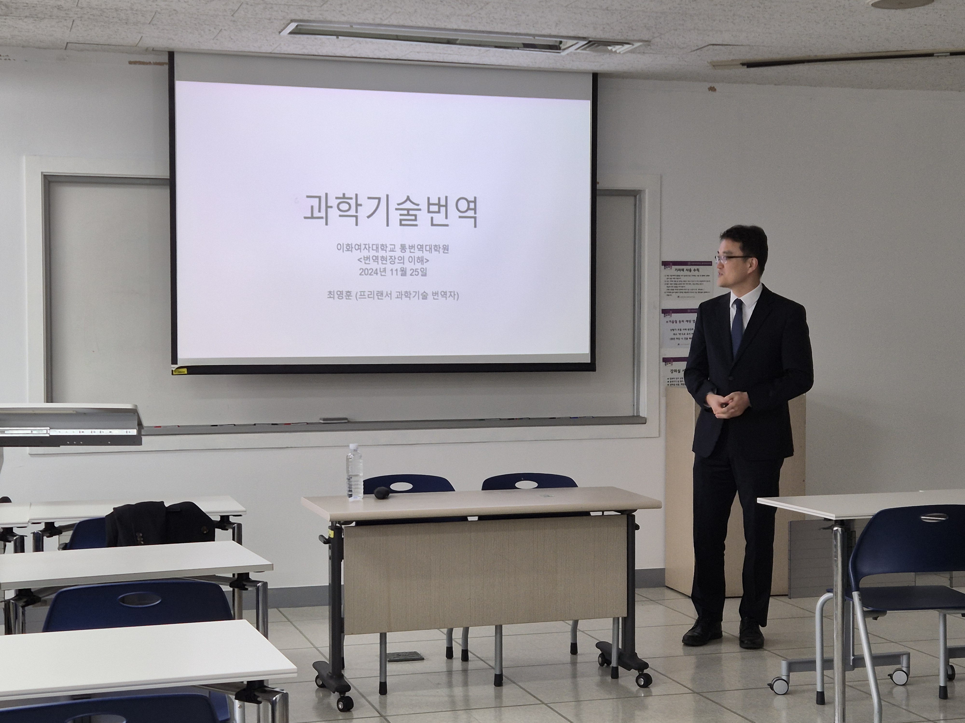 이화여자대학교 통번역대학원에 “과학기술번역”을 주제로 한 특강을 다녀왔습니다. 강의를 잘 들어주신 대학원생 여러분들, 그리고 강의를 마련해 주신 이화여대 신지선 교수님 감사합니다!